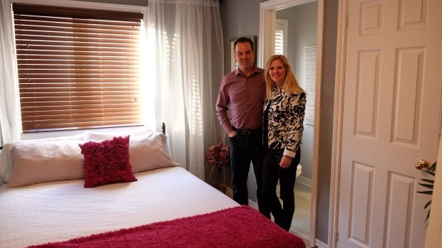 Catherine Pawlick-Grimes is excited as she leads the way into a second-floor spare bedroom with a queen-size bed and adjoining bathroom, meticulously clean and ready for the guest she's expecting.