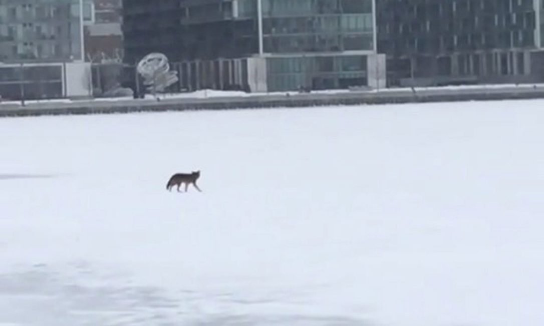 Videographer captures coyote crossing the ice in Toronto harbour