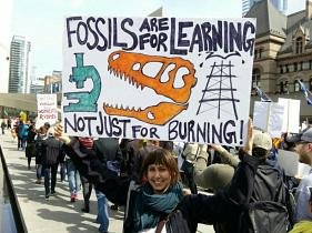 Signs that said “Science – It’s inconvenient … Sad,†and “Fossils are for learning not just for burning†were held up as a crowd Toronto police estimated at 3,000 made its way from Nathan Phillips Square to Queen’s Park.